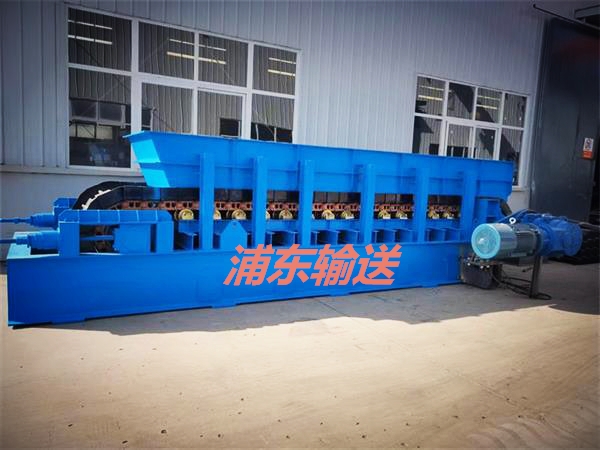 重型鏈板給料機(jī)常用用于粗破供料及中轉(zhuǎn)倉(cāng)倉(cāng)底出料。該機(jī)能定量的將物料向大型破碎機(jī)均勻供料,采用交流變頻調(diào)速的方式控制其生產(chǎn)能力,應(yīng)用了大速比、大扭距并具有機(jī)械過(guò)載保護(hù)功能的硬齒面齒輪減速器直聯(lián)傳動(dòng)與無(wú)鍵連接等**技術(shù)。牽引鏈為高強(qiáng)度履帶鏈條, 其特點(diǎn)是節(jié)距誤差小運(yùn)動(dòng)平穩(wěn),強(qiáng)度高,拉力大無(wú)需潤(rùn)滑。