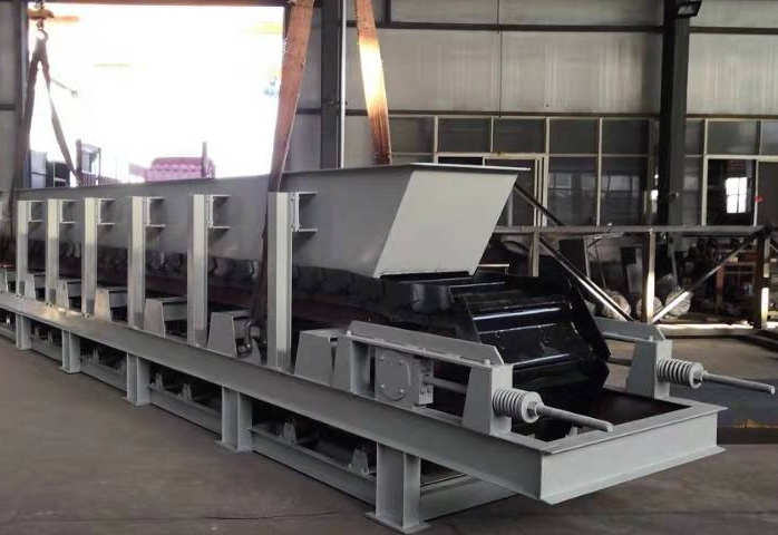 板式給料機(jī)料槽銜接采用弧形搭接,因而有效地防止了物料的散漏現(xiàn)象;