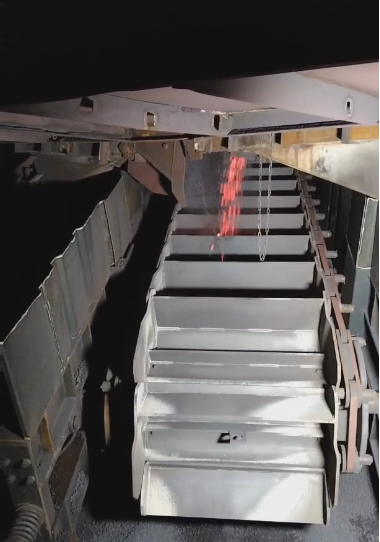 熱礦鏈板機(jī)主要由機(jī)架、驅(qū)動(dòng)裝置、主動(dòng)輪裝置、頭部漏斗、被動(dòng)輪及拉緊裝置、托輥裝配、鏈斗裝配、隔熱密封罩、水冷系統(tǒng)及潤(rùn)滑系統(tǒng)等組成